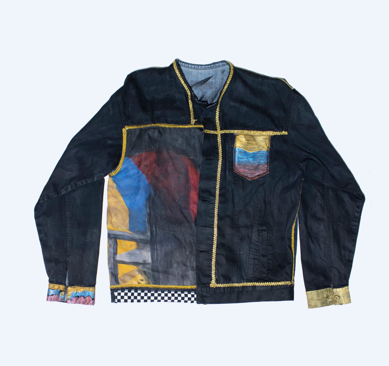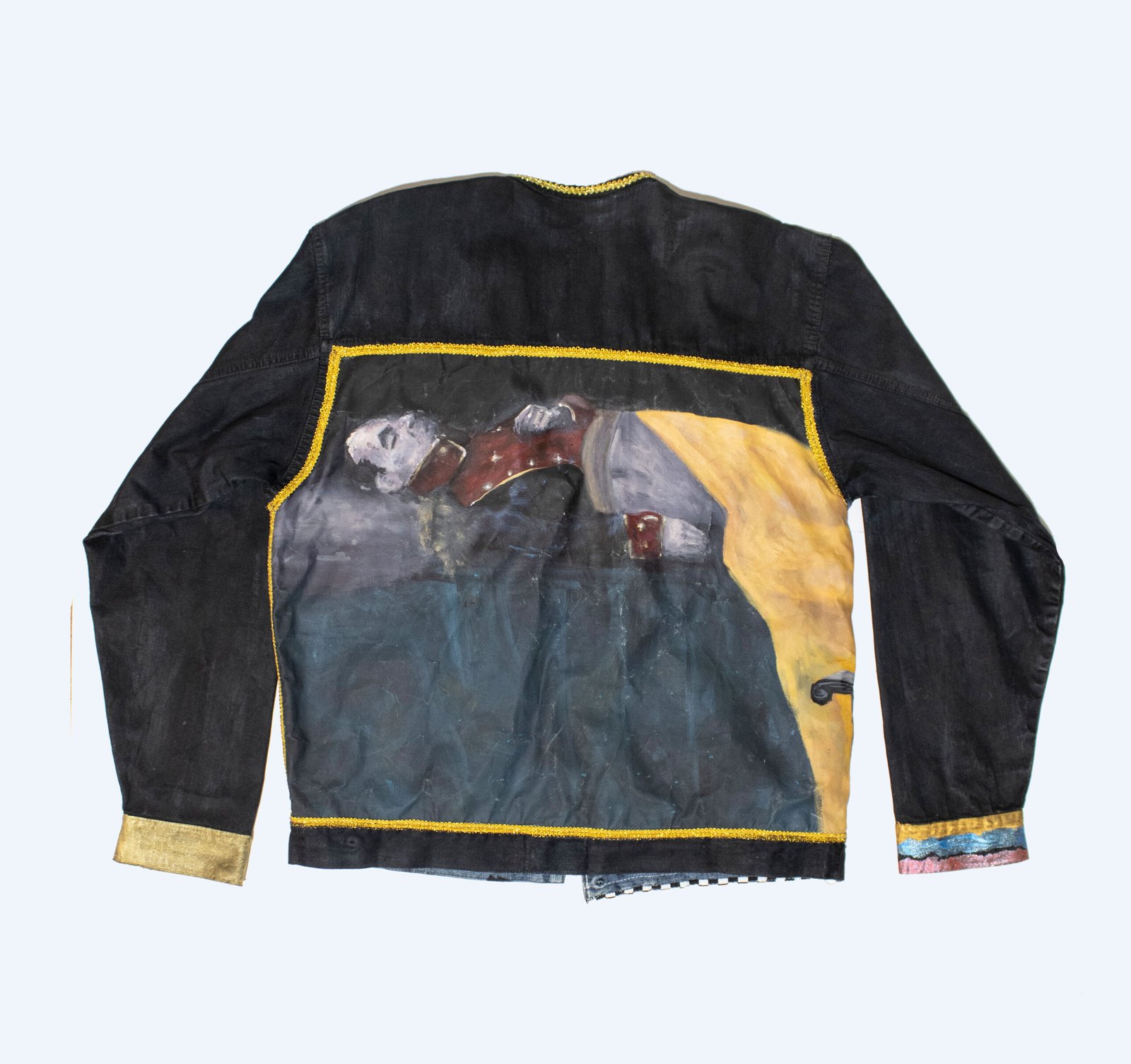 Romero ha elaborado con maestría esta chaqueta mediante técnicas de pintura en acrílico, que aseguran durabilidad y calidad en cada detalle. La intervención destaca por su mezcla de colores vibrantes y trazos únicos, que hacen de esta prenda un elemento central en cualquier conjunto. Su estilo inconfundible garantiza que cada chaqueta sea irrepetible, con una historia propia detrás de cada diseño.